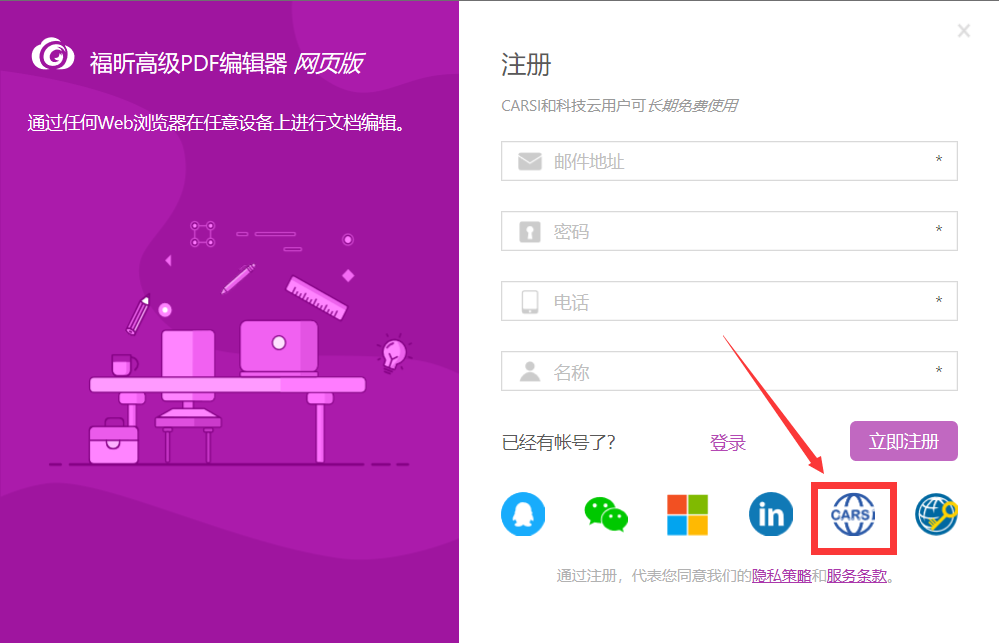 福昕高级PDF编辑器(网页版)登录指南