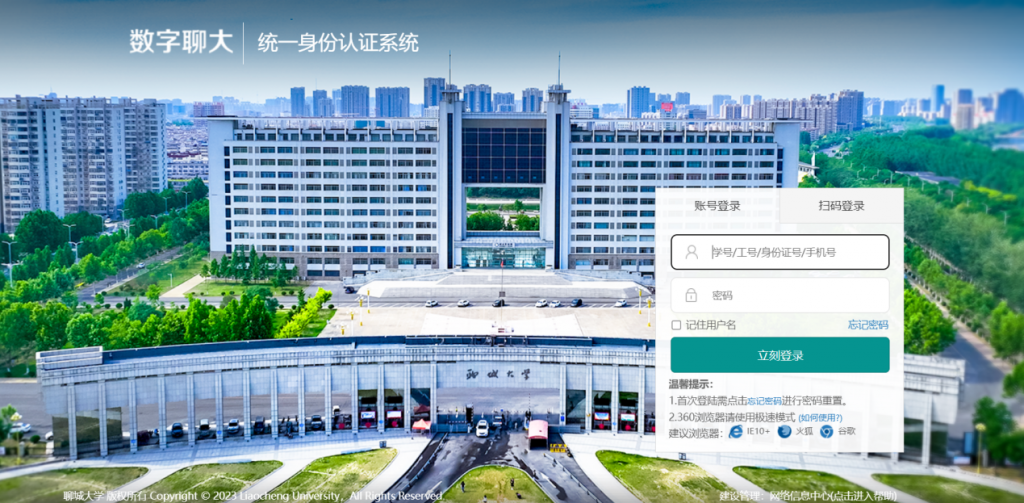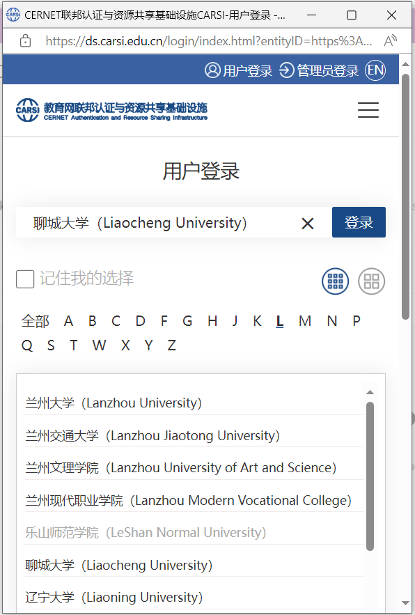 3. 选择“聊城大学”后,点击右侧“登录”按钮。
