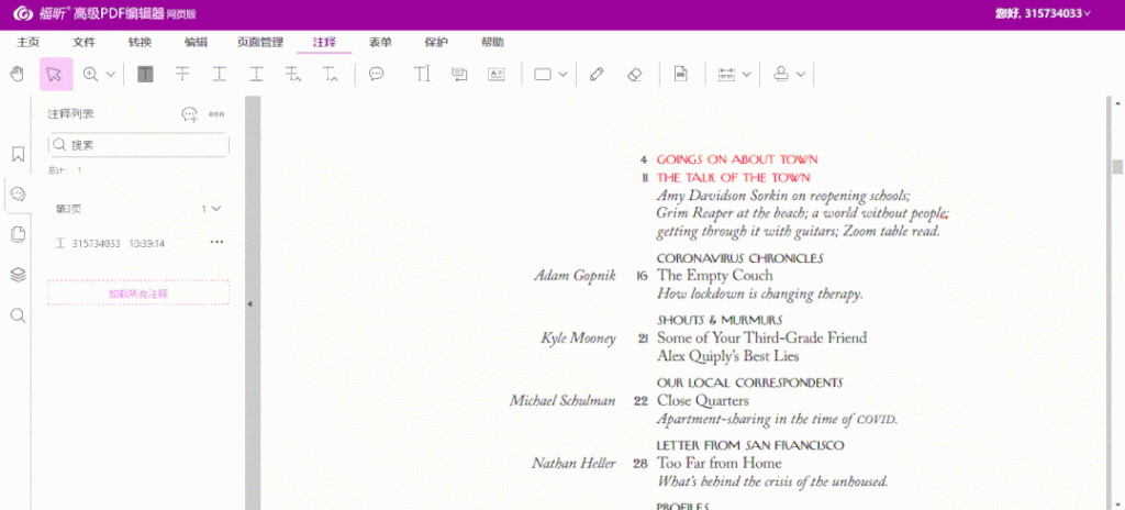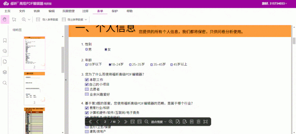 福昕高级PDF编辑器(网页版)主要功能