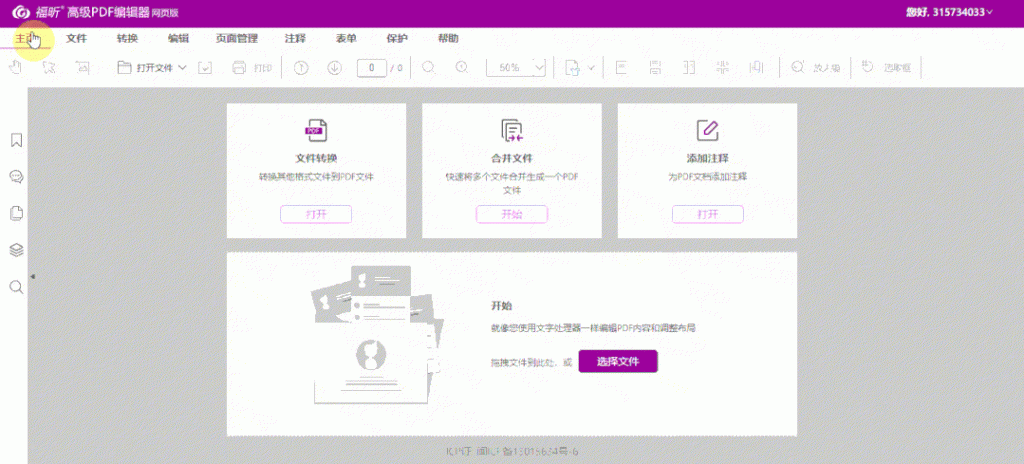 6.登陆后就可以正常使用福昕高级PDF编辑器(网页版)了。