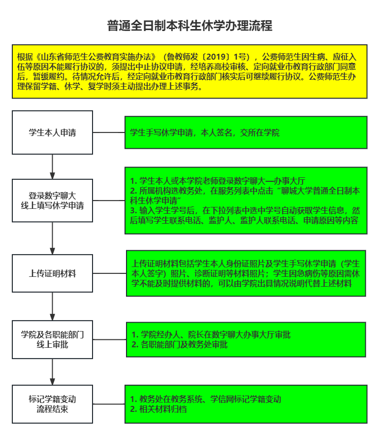 我校普通全日制本科学生因病、因伤或其它原因申请休学的,学生本人或学院老师可通过数字聊大网上办事大厅,提交休学申请,实现该项业务的线上办理。