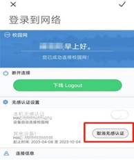 登录成功后,点击下方的“取消无感认证”即可。如下图所示