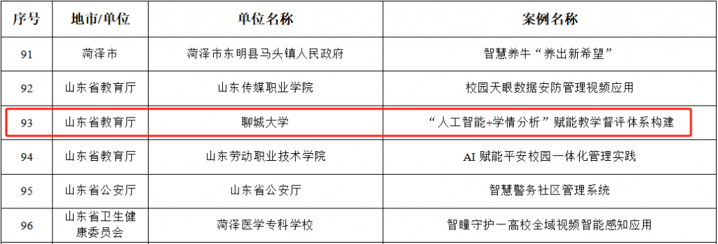 此次评选活动由山东省大数据局组织,旨在挖掘和推广公共视频智能应用的创新实践,推动智能化技术在社会各领域的应用与发展。全省共评出各行业案例100项,我校是入围的唯一一所本科高校。